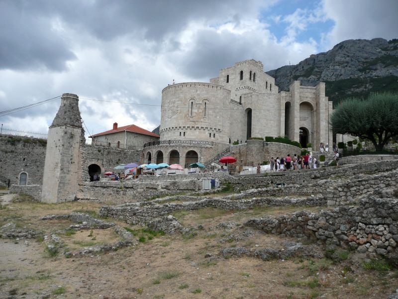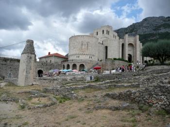 На наивысшей точке города находится средневековый замок. Поднявшись по лестнице на его стены, вы насладитесь потрясающими пейзажами. Непременно сходите на экскурсию в археологический музей, а также Музей Скандербега. На мощеной улице, которая от замка ведет к Старому базару, расположены десятки сувенирных лавок, где можно купить уникальные сувениры ручной работы. В самом центре находится памятник Скандербегу.